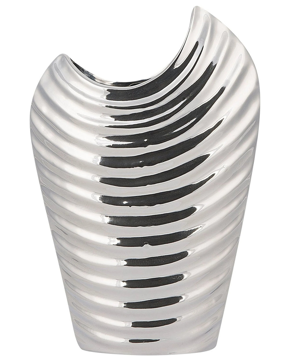Decorative Flower Vase Silver Stoneware Ribbed Glamour Beliani