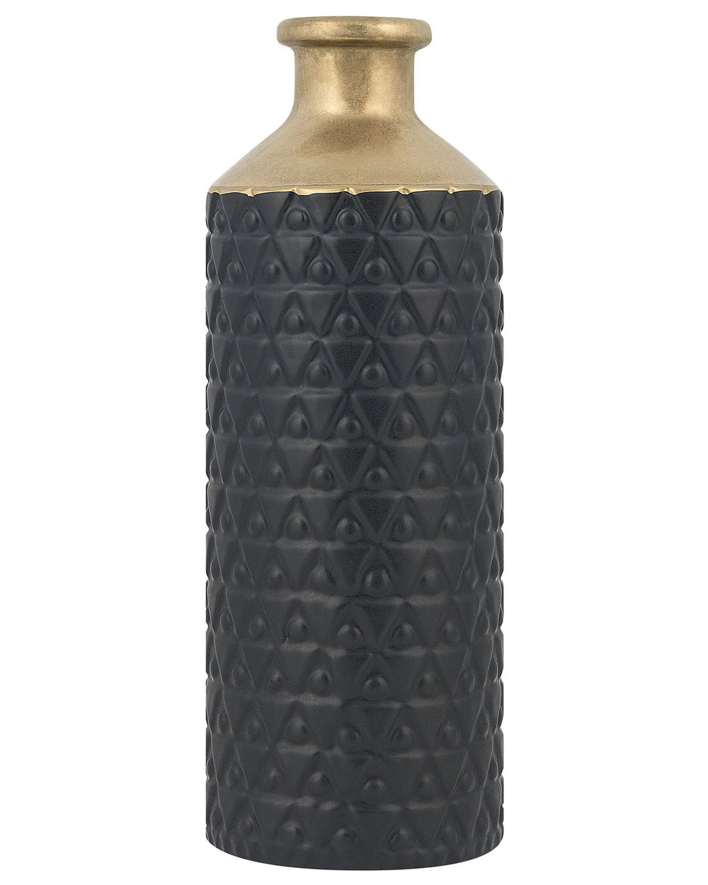 Decorative Table Vase Black with Gold Stoneware 39 cm Beliani