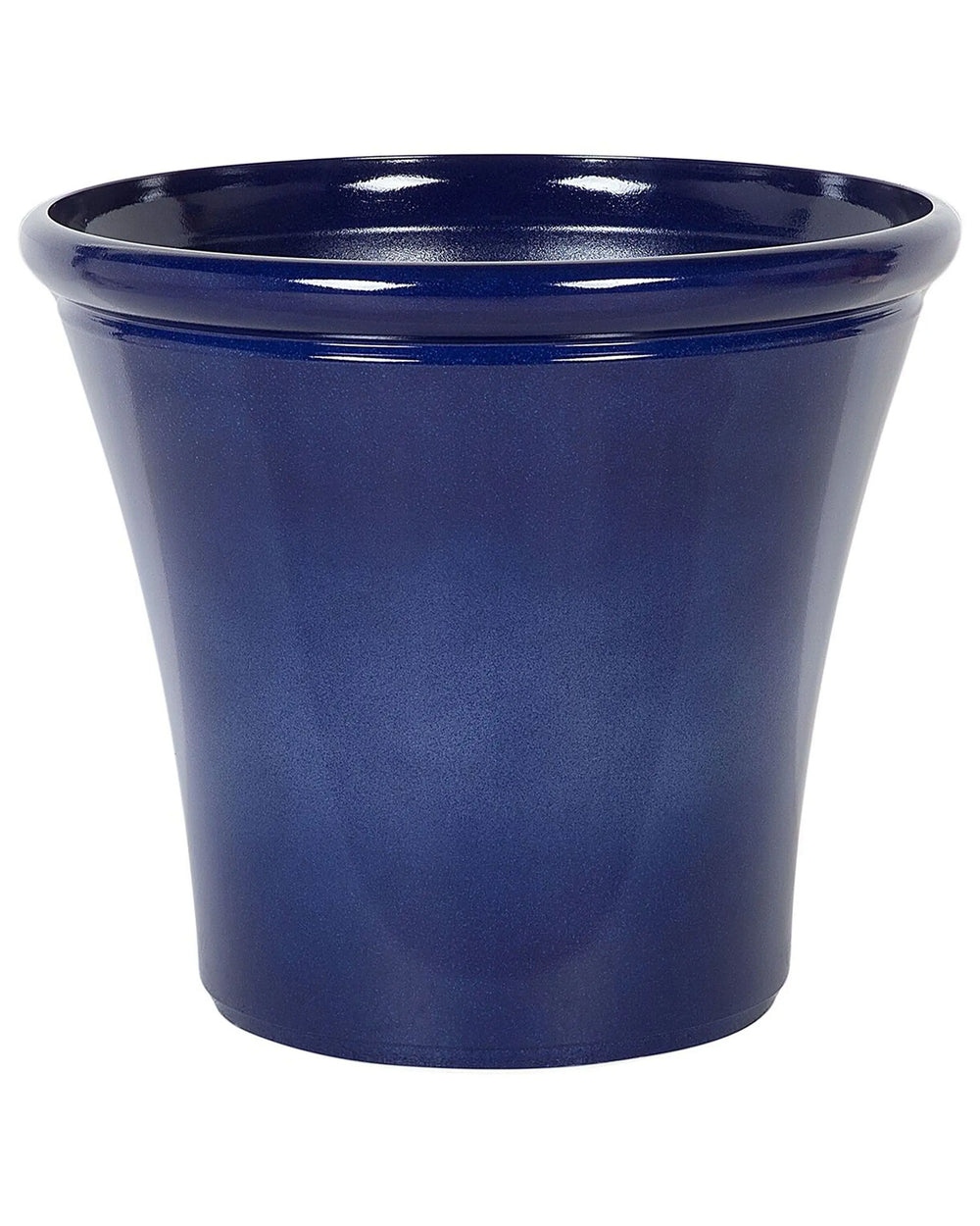 Plant Pot Planter Solid Navy Blue Fibre Clay High Gloss Outdoor Resistances 46 x 40 cm All-Weather Beliani