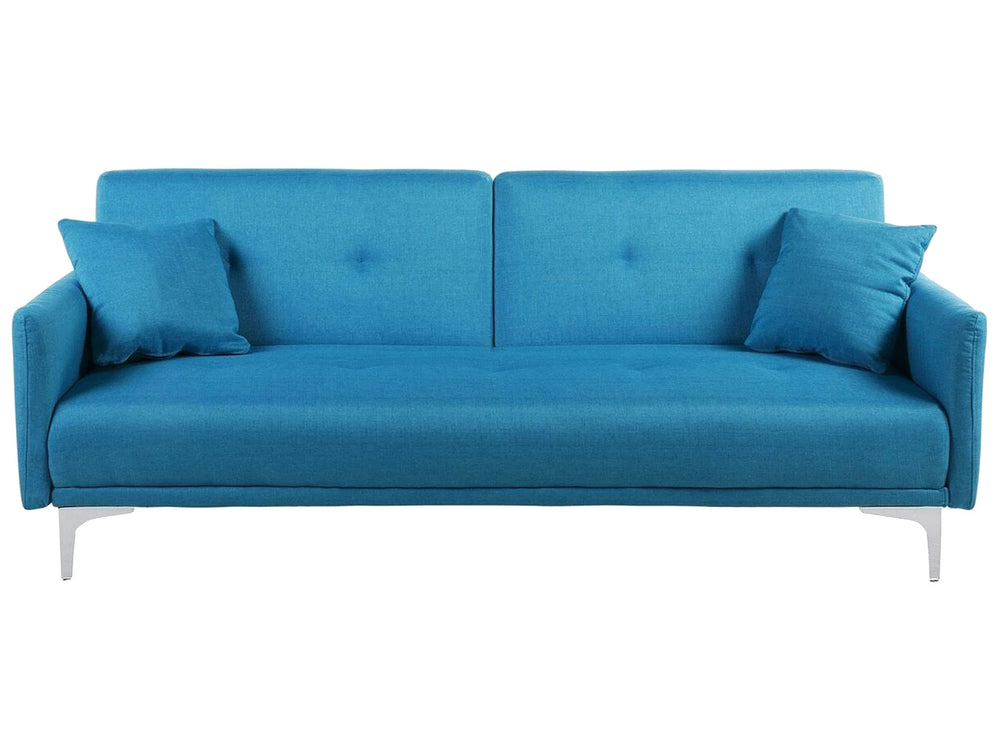 Sofa Bed Sea Blue 3 Seater Buttoned Seat Click Clack Beliani