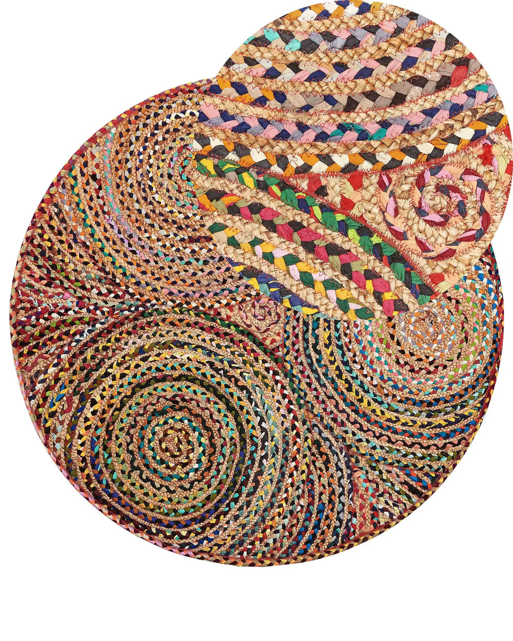 Modern Hippie Area Rug Multicoloured Pink Red Orange Blue Round 140 cm Cotton Braided Bedroom Living Room Beliani