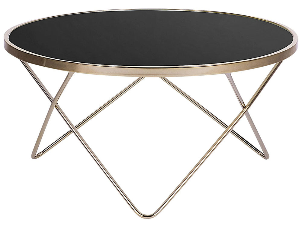 Coffee Table Black Tempered Glass Top Gold Metal Hairpin Legs 80 cm Round Shape Beliani