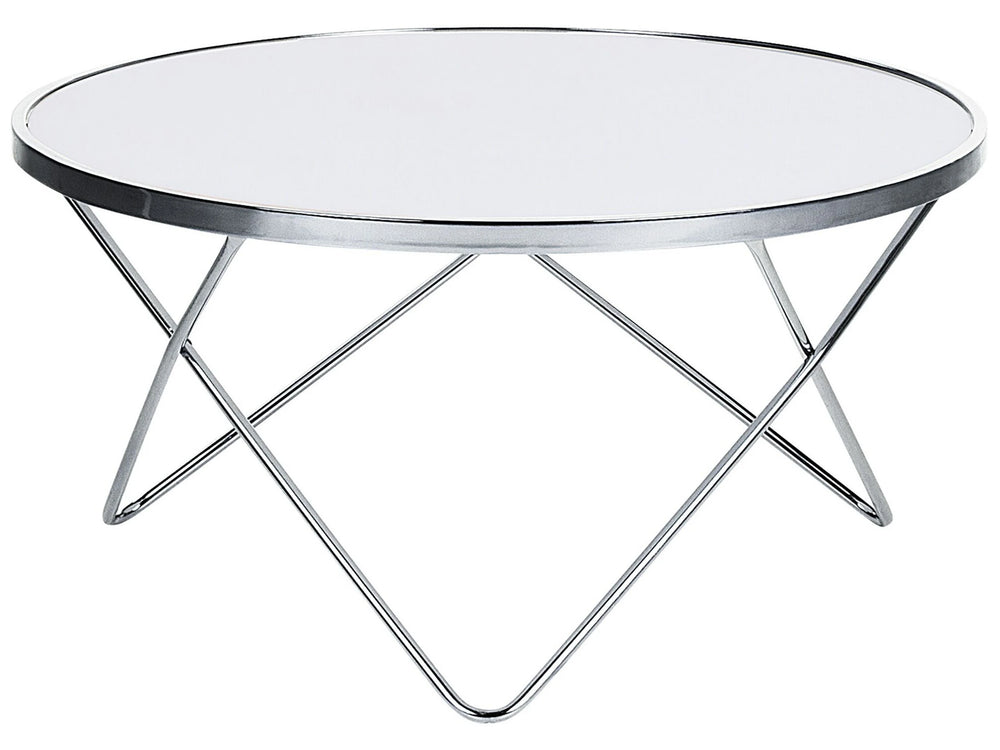 Coffee Table White Tempered Glass Top Silver Metal Hairpin Legs 80 cm Round Shape Beliani