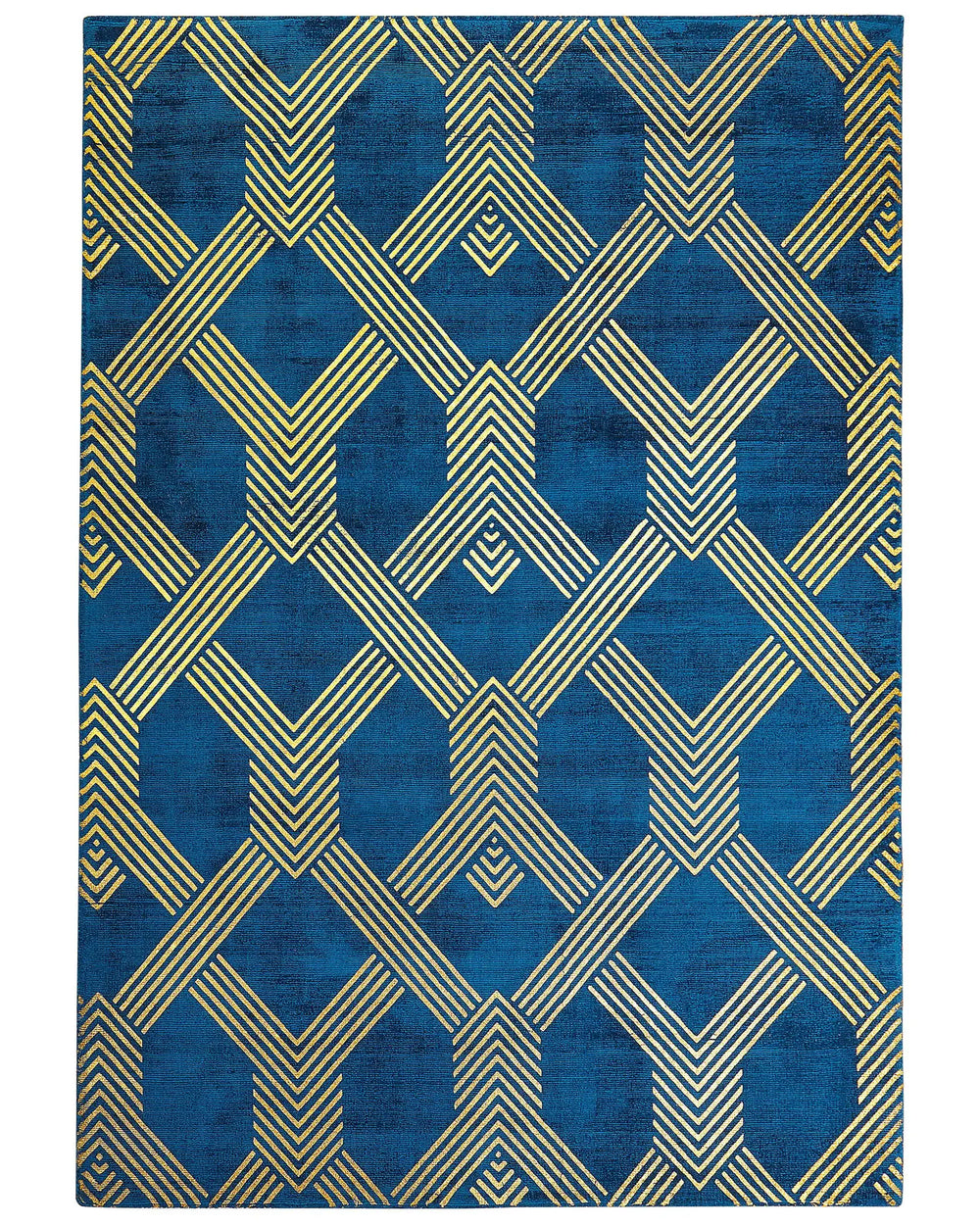 Rug Blue with Gold Geometric Pattern Viscose with Cotton 160 x 230 cm Style Modern Glam Beliani