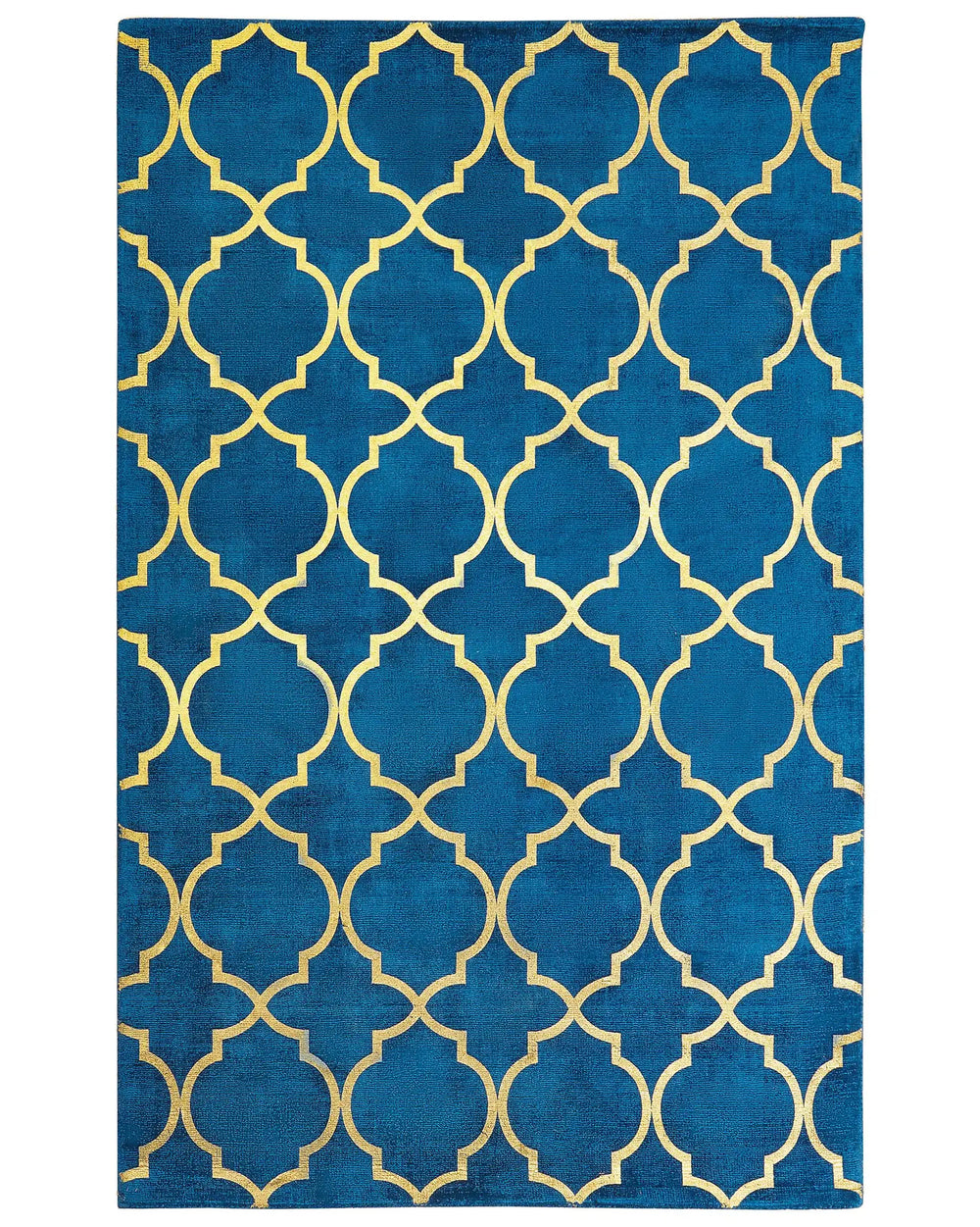 Rug Blue with Gold Quatrefoil Pattern Viscose with Cotton 140 x 200 cm Style Modern Glam Beliani