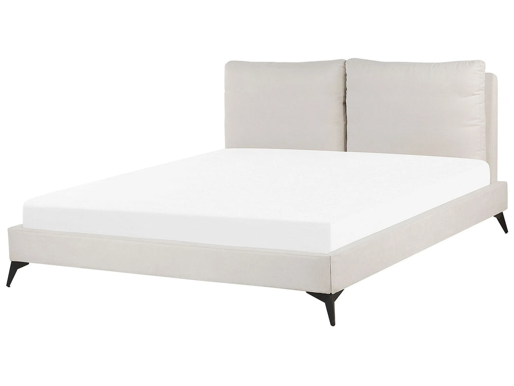EU Super King Size Panel Bed 6ft Beige Fabric Slatted Base Modern Beliani