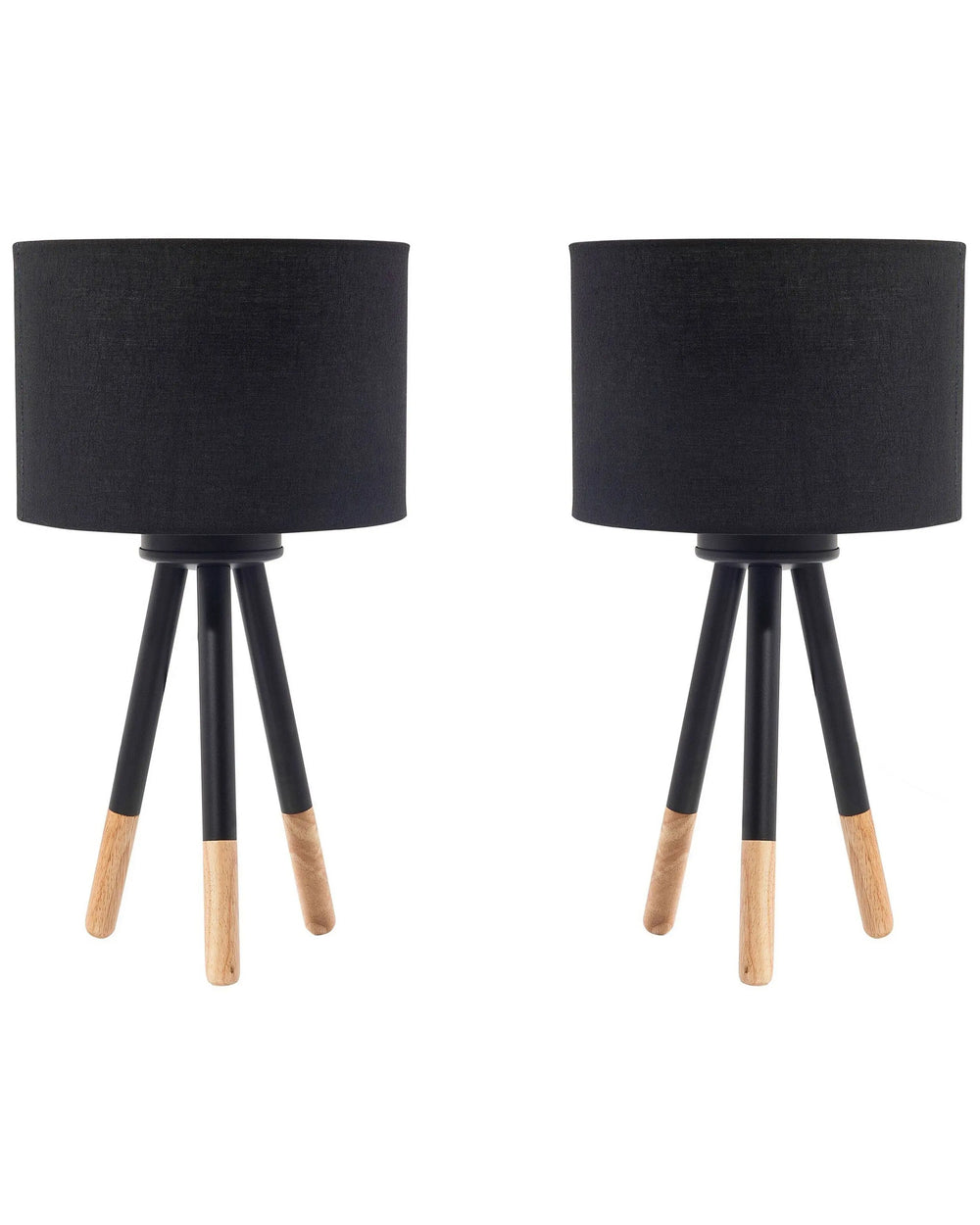 Set of 2 Table Lamps Black Metal 40H cm Wooden Tripod Base Black Fabric Shade Modern Beliani