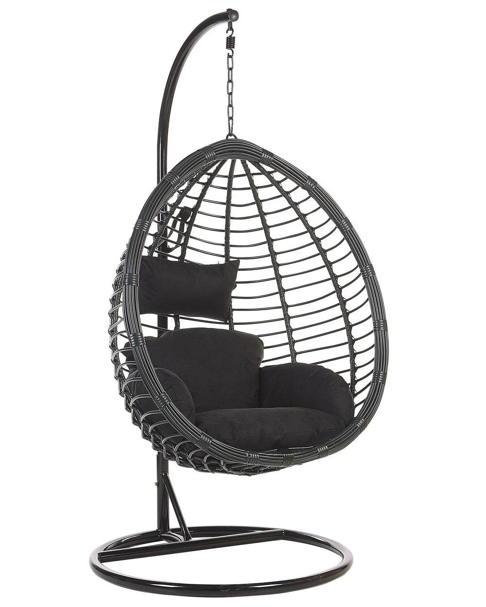 Hanging Chair Black Rattan Metal Frame Indoor-Outdoor Egg Shape Modern Boho Beliani
