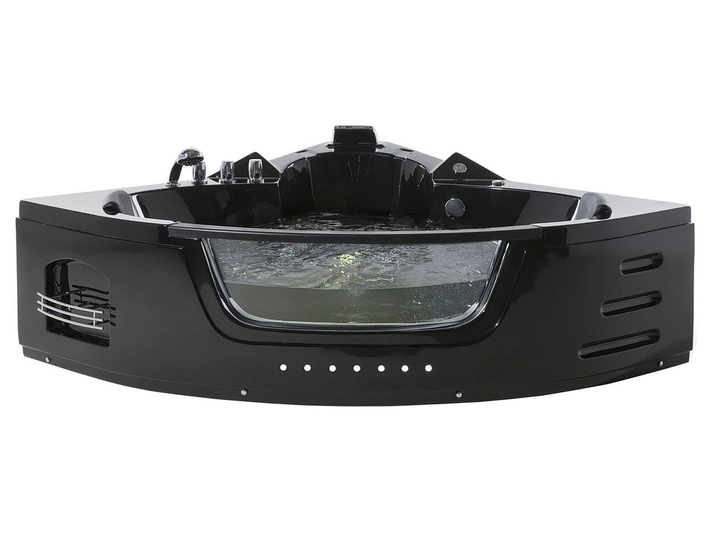 Massage Points Corner Bath Black Sanitary Acrylic and Glass 140 cm Beliani
