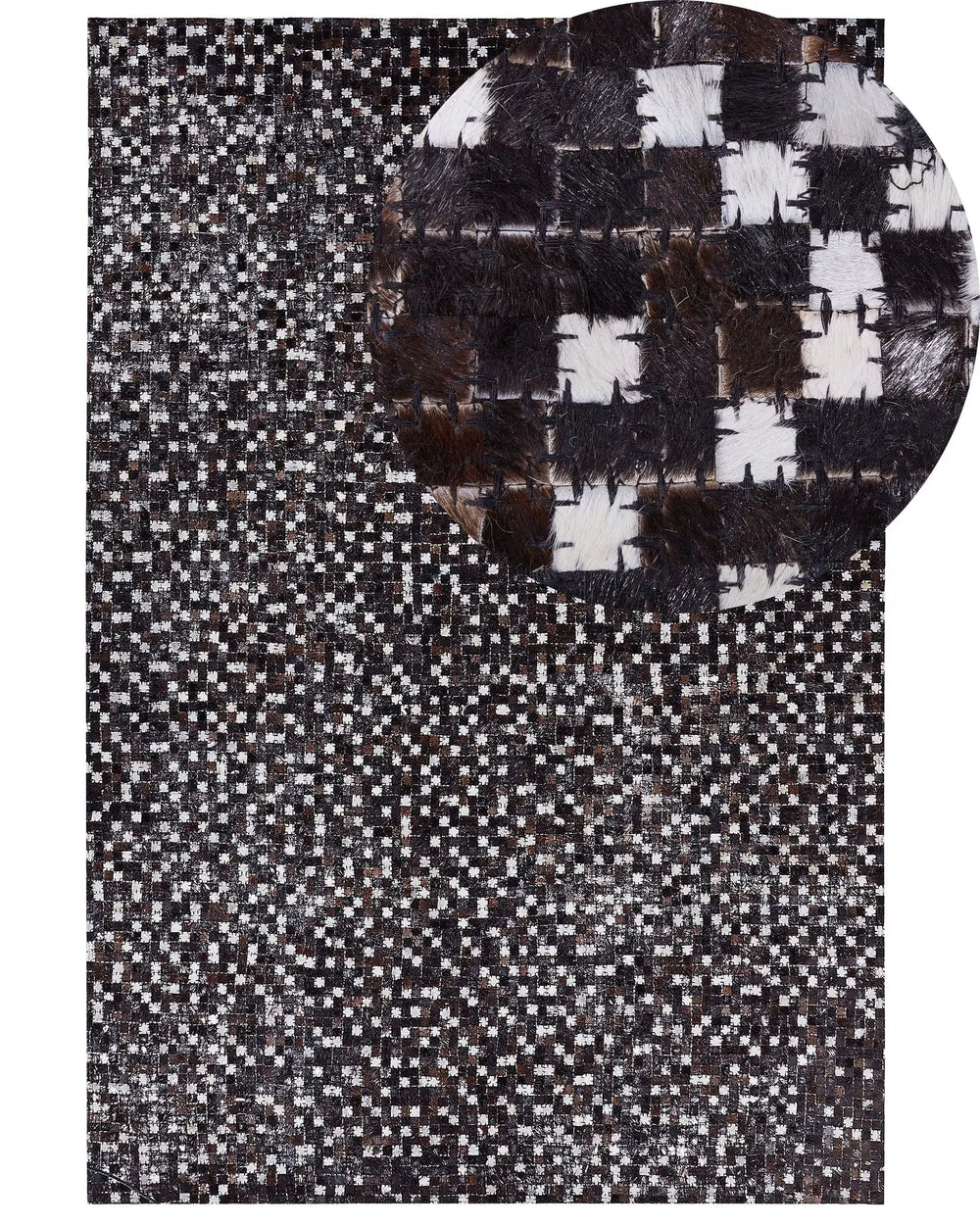 Area Rug Brown with Silver Leather 160 x 230 cm Rustic Patchwork Beliani