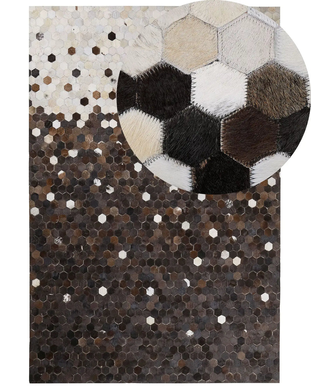 Area Rug Brown with Beige Leather 140 x 200 cm Rustic Patchwork Beliani