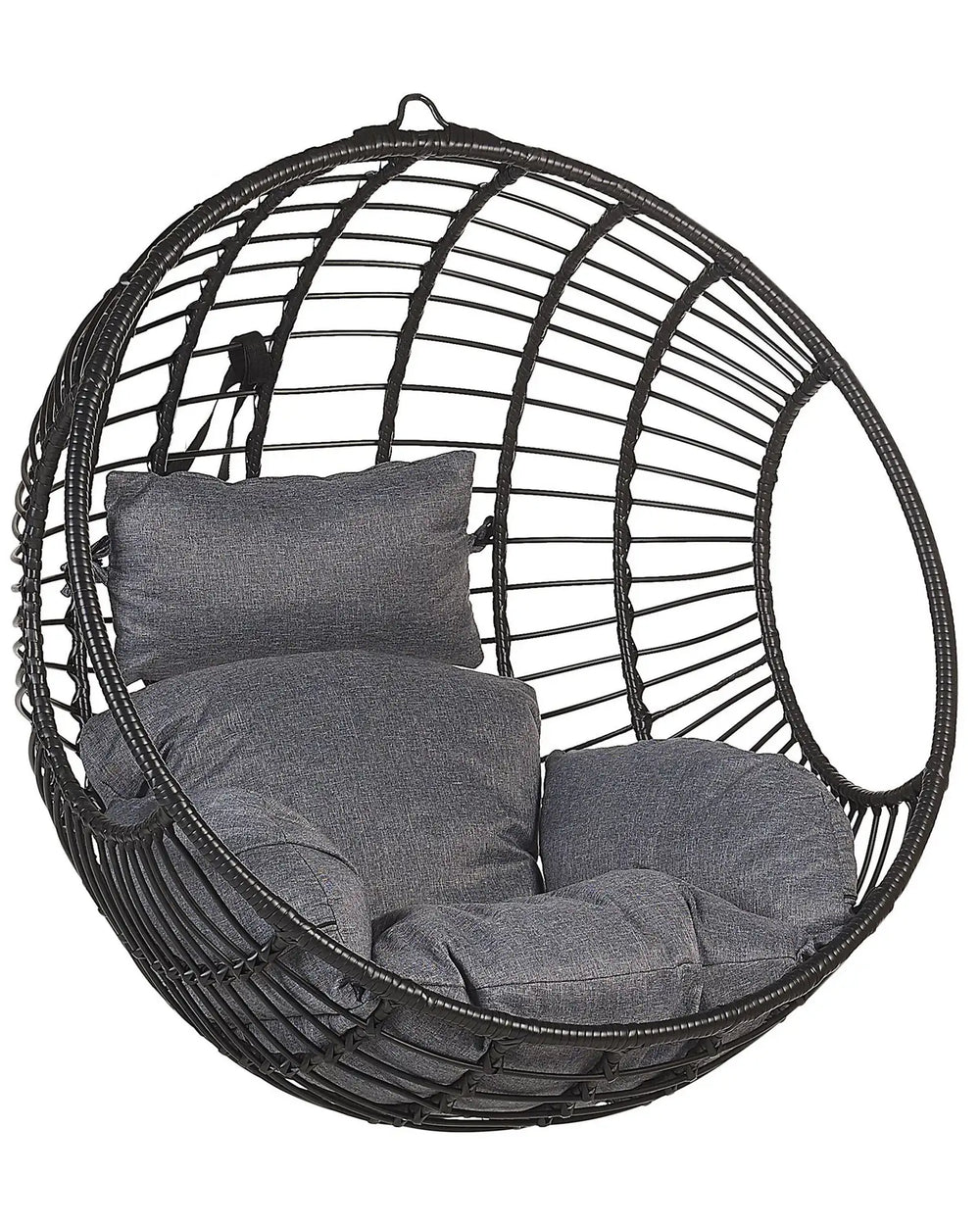 Hanging Chair Black Rattan Round Wicker Basket without Stand with Cushions Boho Beliani