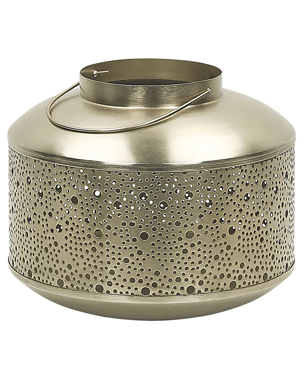 Metal Lantern Gold Iron with Holes H 22 cm Pillar Candle Holder Beliani