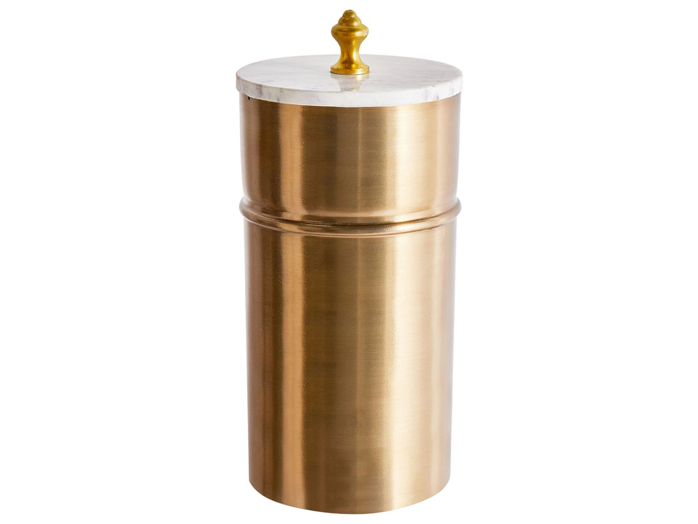 Decorative Container Gold Metal Stone White Lid Round Storage Glamour Beliani