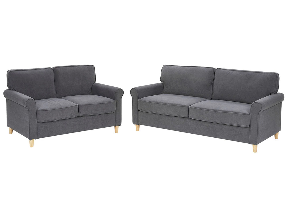 2 + 3 Seater Sofa Set Grey Velvet Fabric Wooden Frame Pocket Springs Living Room Beliani