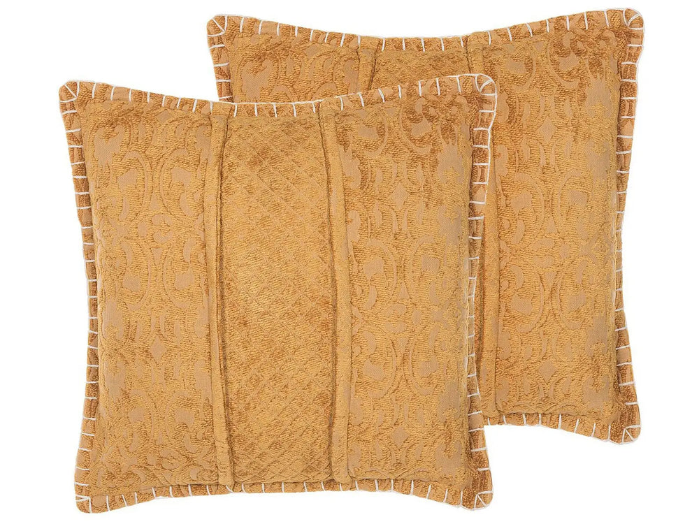 Set of 2 Decorative Cushions Yellow Multipattern 45 x 45 cm Floral Diamond Geometric Retro Boho Decor Accessories Beliani