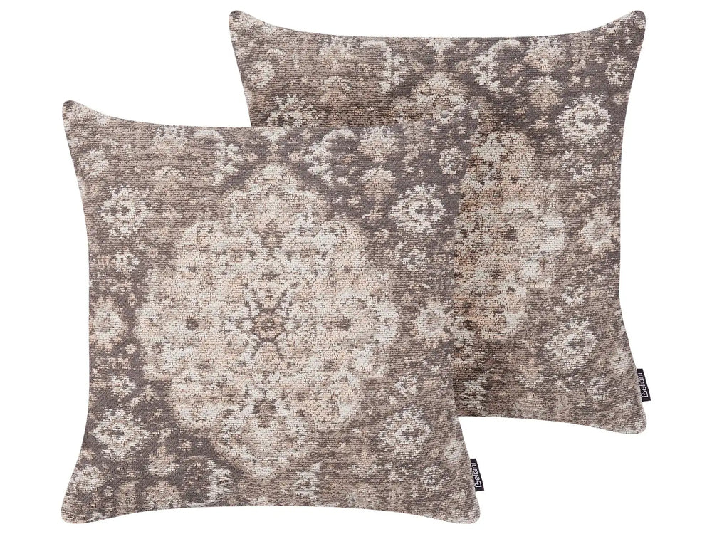 Set of 2 Decorative Cushions Brown Oriental Pattern 45 x 45 cm Distressed Vintage Decor Accessories Beliani is backordered and will ship as soon as it is back in stock.