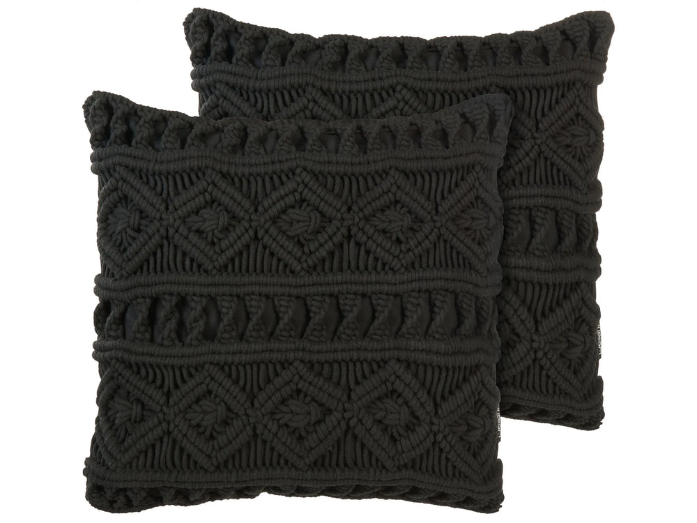 Decorative Cushion Set of 2 Black Cotton Macram 45 x 45 cm Rope Boho Retro Decor Accessories Beliani