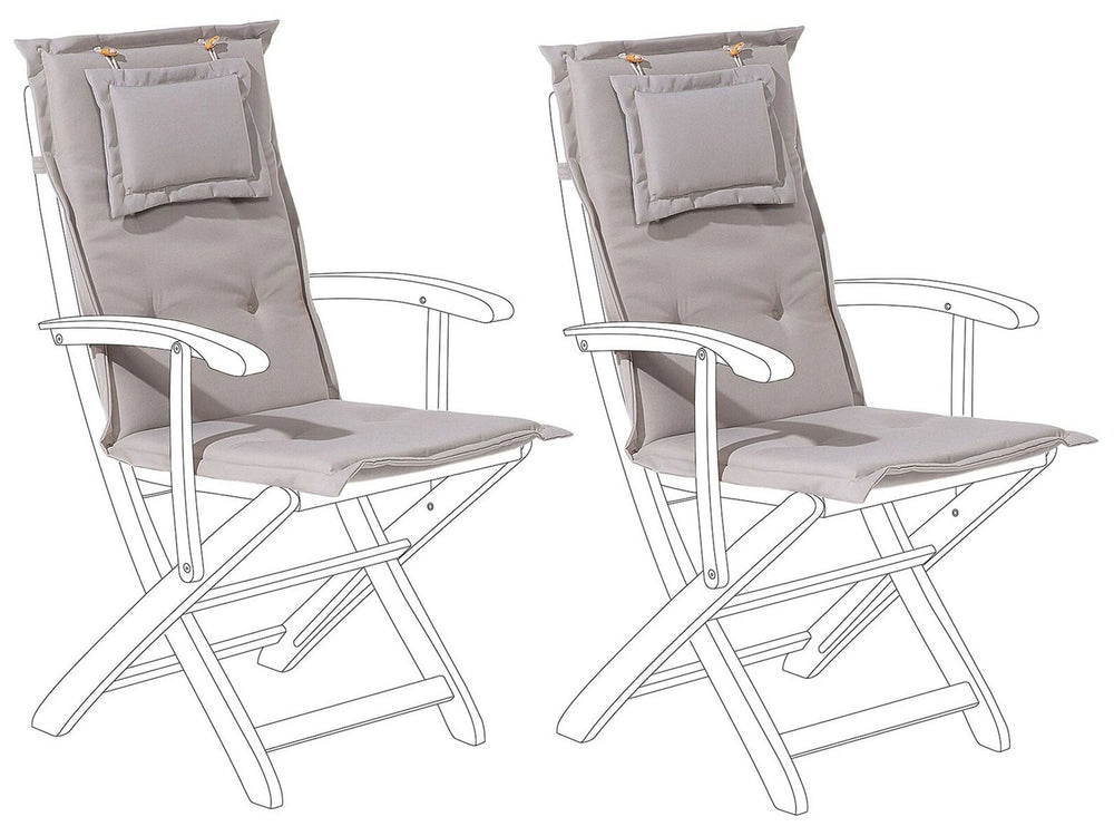 Outdoor Chair Replacement Cushions Set Taupe Fabric UV Resistant Thickly Padded 2 Pillows Beliani