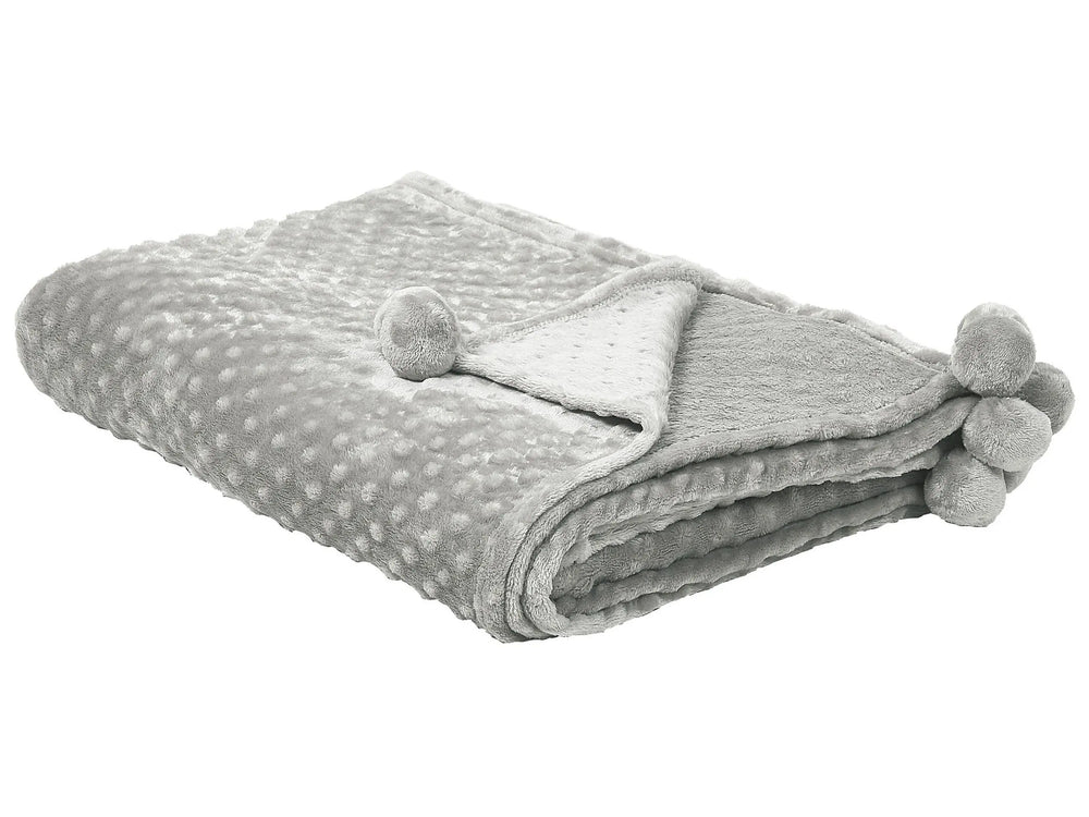 Blanket Light Grey Throw 200 x 220 with Pom Poms Popcorn Texture Soft Coverlet Beliani