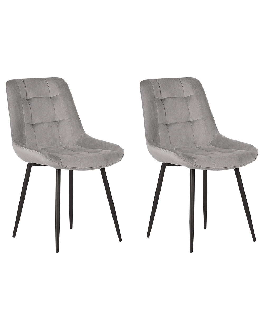 Set of 2 Dining Chairs Grey Velvet Black Iron Legs Modern Upholstered Chairs Beliani