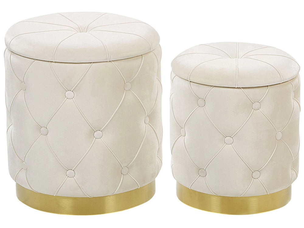 Set of Storage Pouffes White Polyester Velvet Button Tufted Upholstery Golden Base Retro Design Beliani is backordered and will ship as soon as it is back in stock.