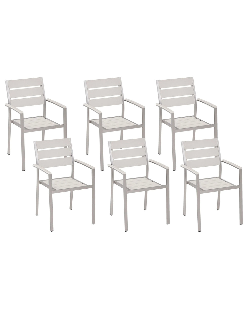 Set of 6 Garden Dining Chairs White Plastic Wood Slatted Back Aluminium Frame Outdoor Chairs Set Beliani is backordered and will ship as soon as it is back in stock.