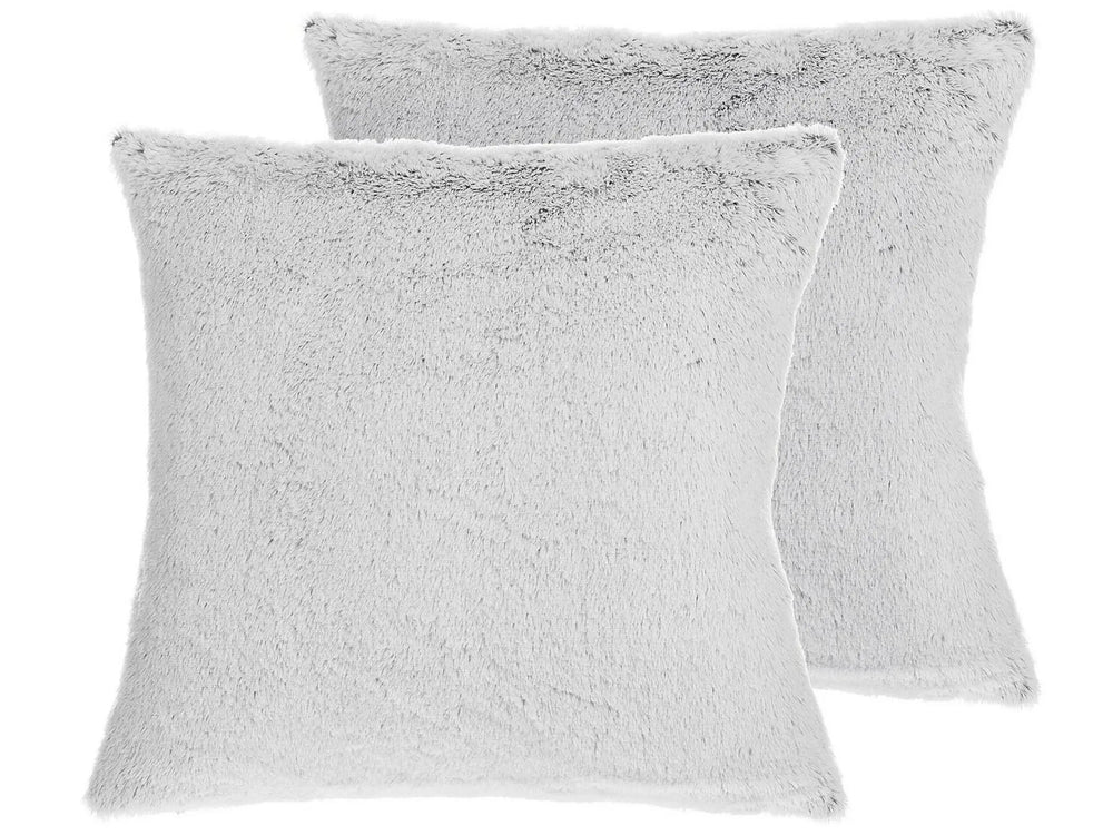 Set of 2 Decorative Cushions Grey Faux Fur 45 x 45 cm Double Sided Decor Accessories Beliani