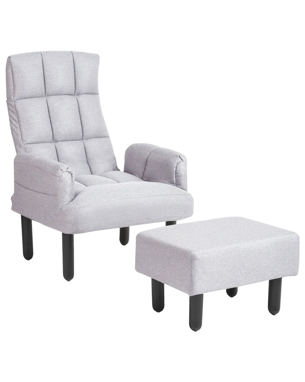 Recliner Chair Grey Fabric 65L x 65W x 92H cm Ottoman Padded Wooden Legs Beliani