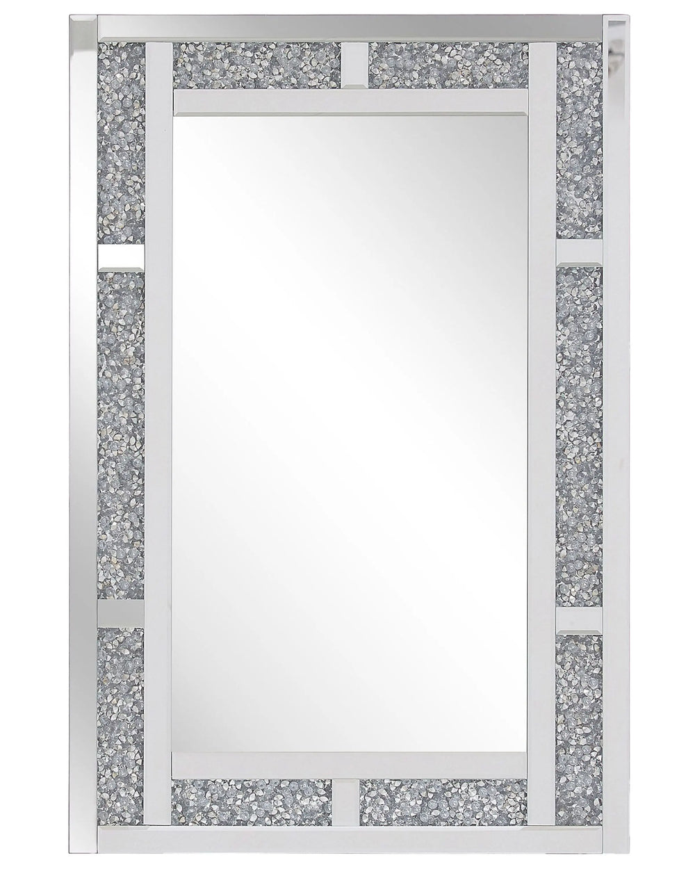 Wall Mounted Hanging Mirror Silver Rectangular 60 x 90 cm Modern Glamour Living Room Bedroom Decoration Beliani