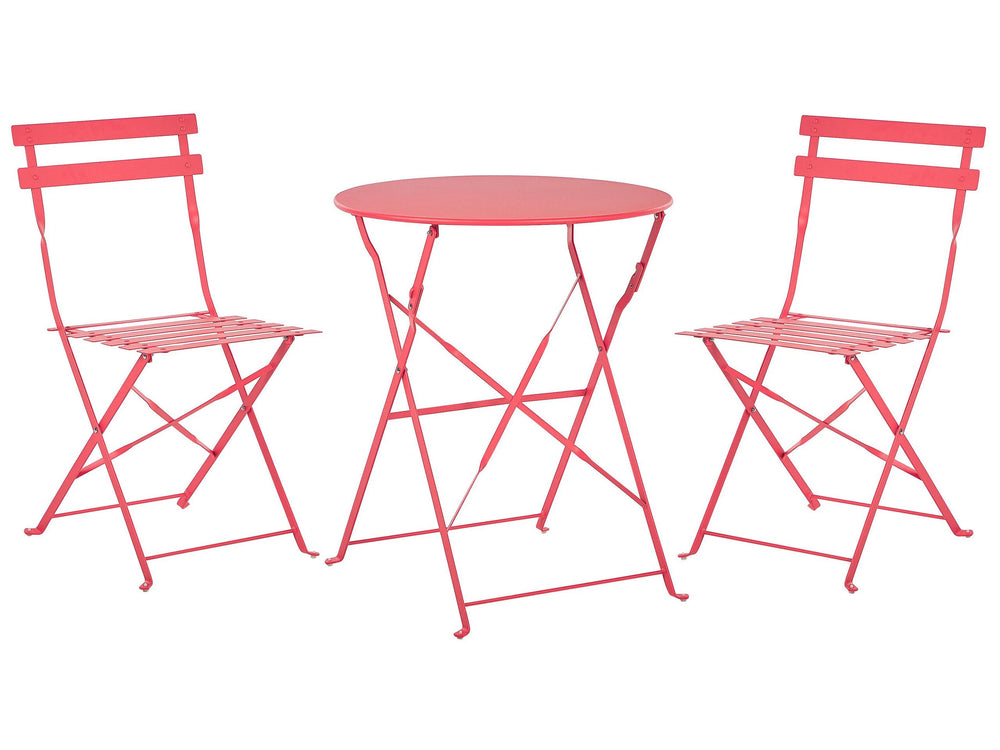 3 Piece Bistro Set Red Metal Folding Slatted Seat Back Outdoor Beliani