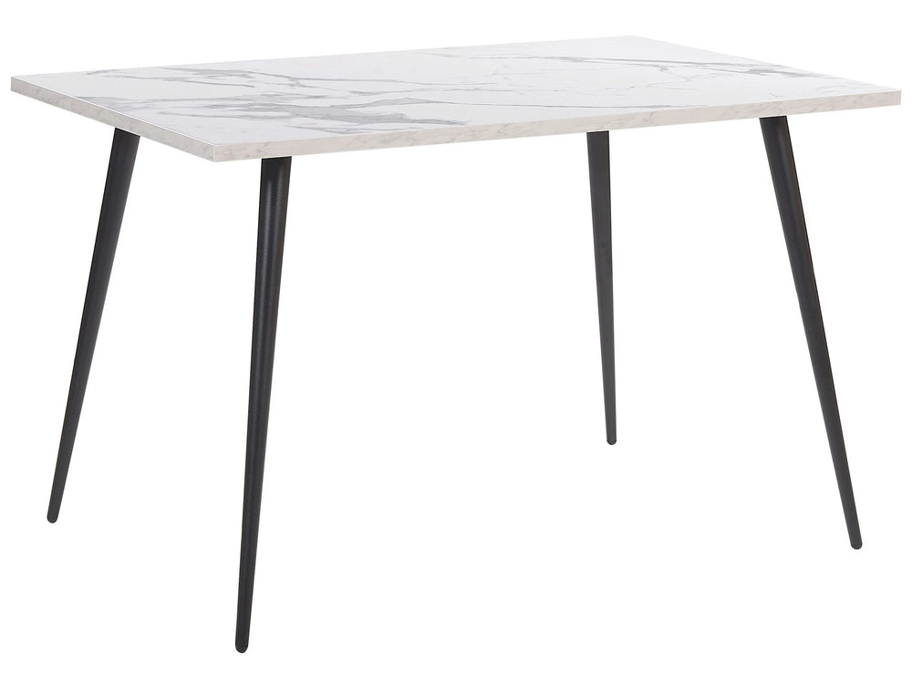 Dining Table White Marble Effect Top Black Metal Legs Rectangular 120 x 80 cm for 4 People Modern Glamour Style Beliani