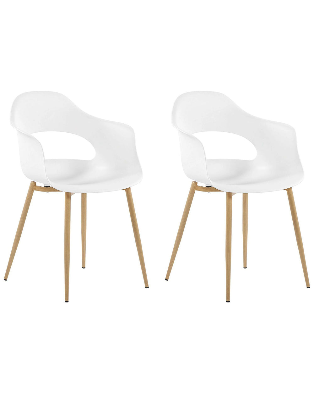 Set of 2 Dining Chairs White Synthetic Material Sleek Legs Decorative Beliani