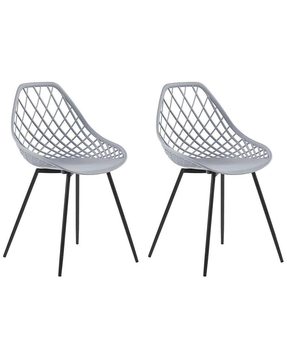 Set of 2 Dining Chairs Grey Synthetic Seat Black Metal Legs Net Design Backrest Modern Scandinavian Beliani