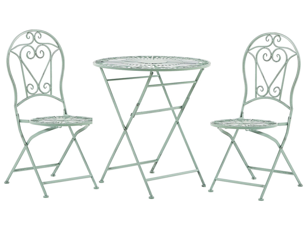 Outdoor Bistro Set Green Metal 2 Folding Chairs Round Table Decorative Balcony Set Beliani is backordered and will ship as soon as it is back in stock.