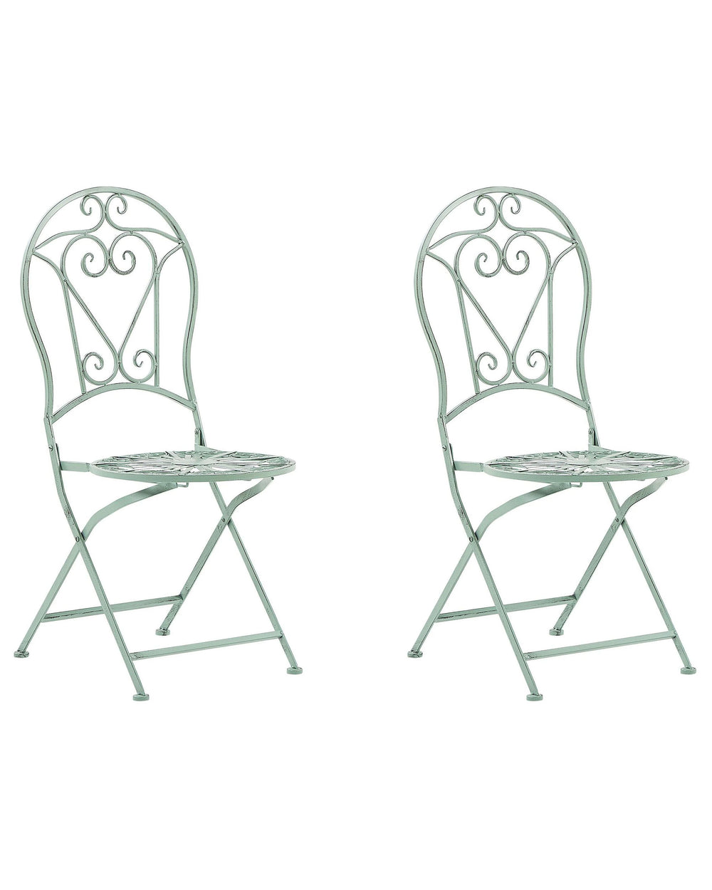 Outdoor Set of 2 Chairs Green Metal Powder Coated vintage Ornaments Beliani