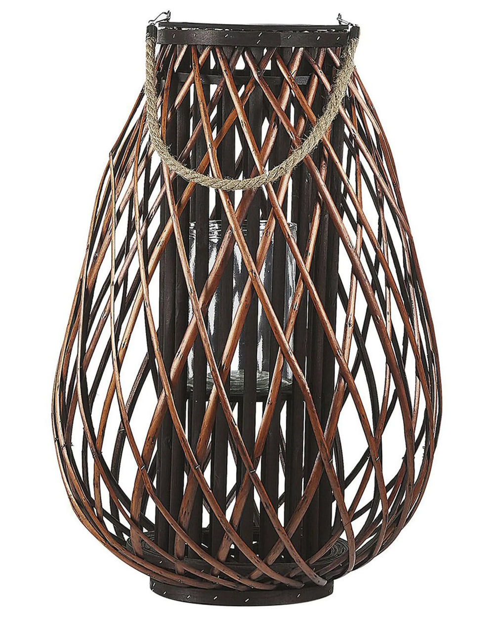 Lantern Brown Willow Wood 60 cm Rope Handle Decorative Candle Holder Beliani