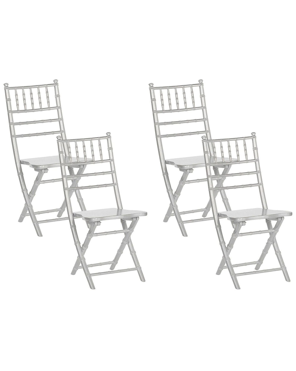 Set of 4 Folding Chairs Silver Beechwood Dining Room Chairs Contemporary Style Beliani