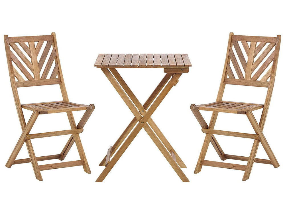 3 Piece Bistro Set Light Solid Acacia 2 Chairs and Tea Table Folding Slatted Design Beliani