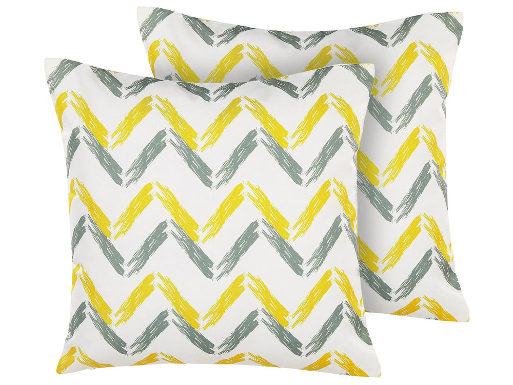 Set of 2 Garden Cushions Yellow and Grey Multicolour Polyester Chevron Pattern 45 x 45 cm Modern Outdoor Decoration Water Resistant Beliani