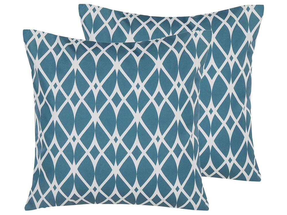 Set of 2 Garden Cushions Blue Polyester Geometric Pattern 45 x 45 cm Modern Decor Accessories Water Resistant Beliani