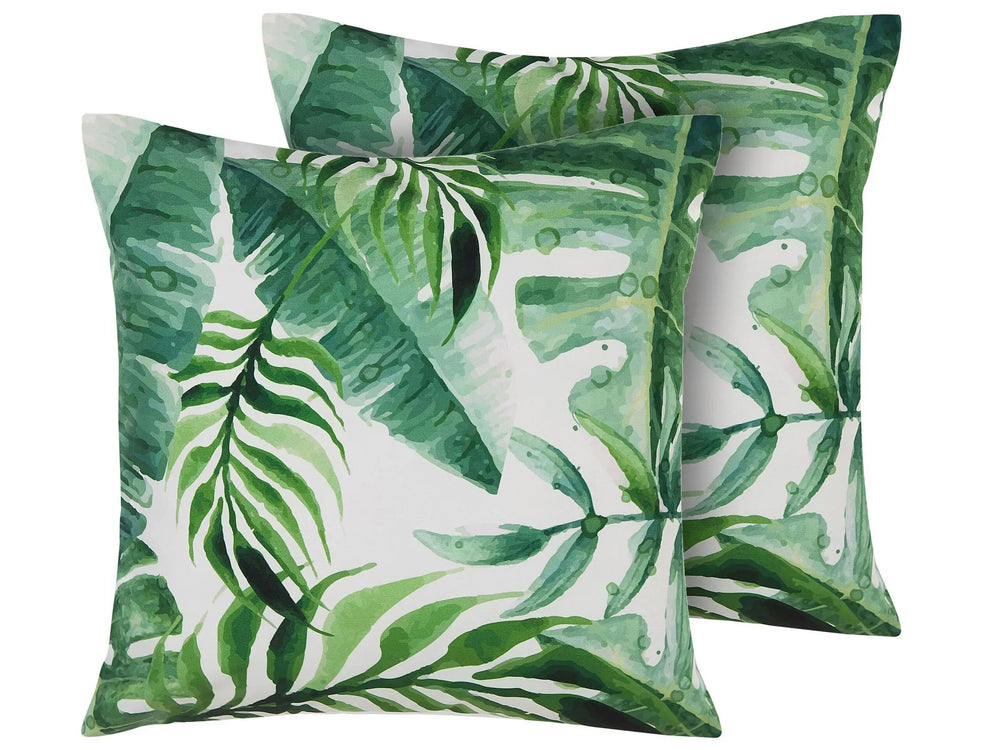 Set of 2 Garden Cushions Green Leaf Motif Polyester Square 45 x 45 cm Water Proof Modern Design Beliani
