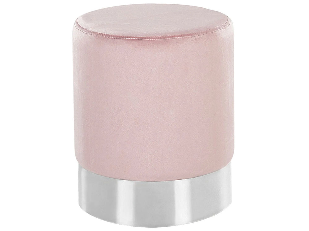Pouffe Pink Velvet Upholstery Silver Metallic Band Glamour Style Beliani