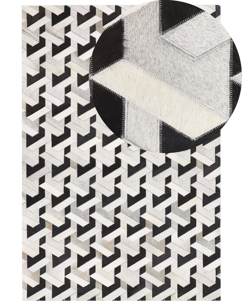 Area Rug Black and White Cowhide Leather 160 x 230 cm Geometric Pattern Patchwork Beliani