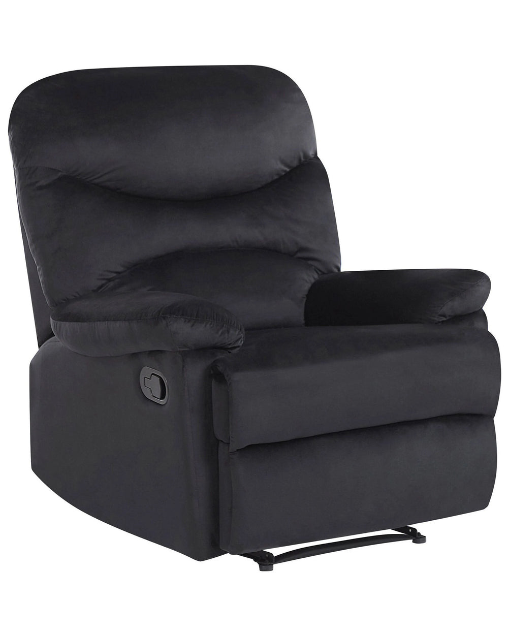 Recliner Chair Black Velvet Upholstery Push-Back Manually Adjustable Back and Footrest Retro Design Armchair Beliani is backordered and will ship as soon as it is back in stock.