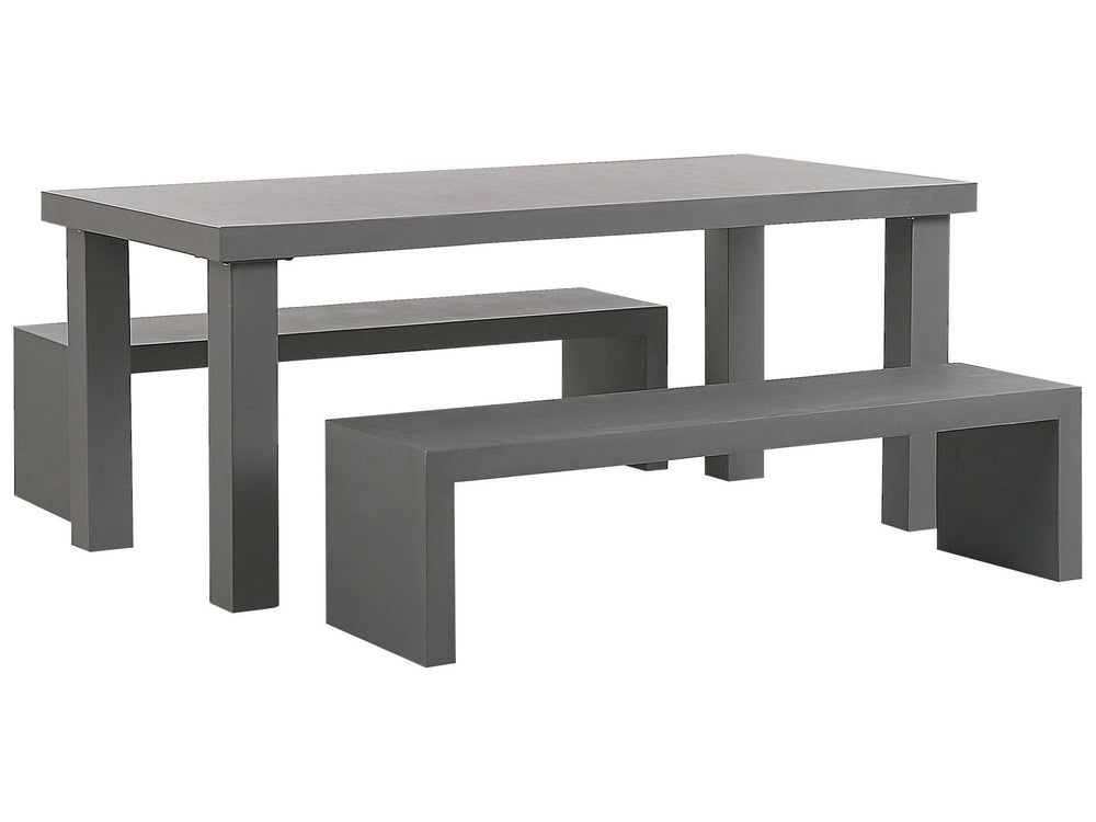 Garden Dining Set Grey Concrete Rectangular Table 2 U Shaped Benches 4 Seater Water Resistant Beliani