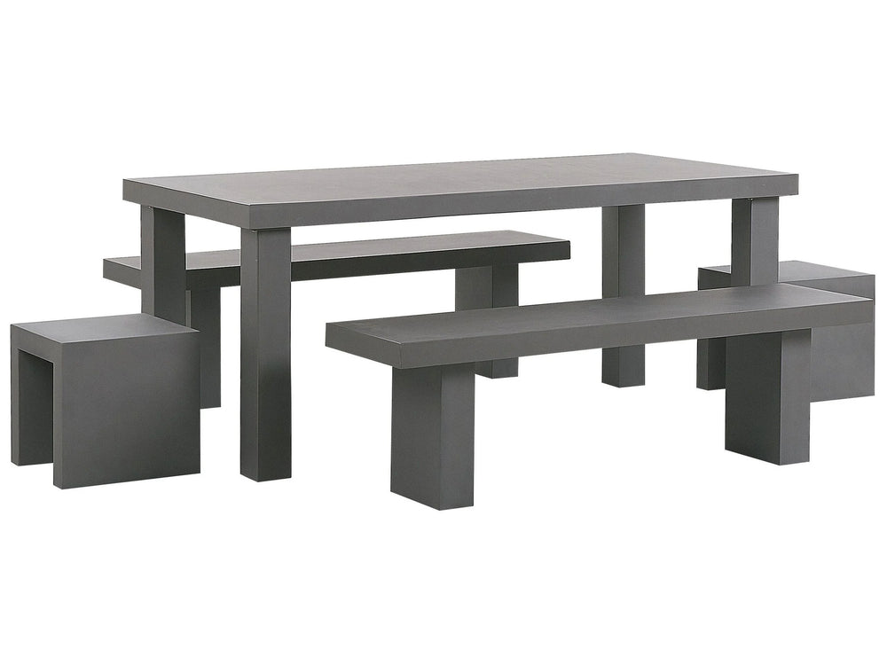 Garden Dining Set Grey Concrete Rectangular Table 2 Benches 2 Stools 6 Seater Water Resistant Beliani is backordered and will ship as soon as it is back in stock.