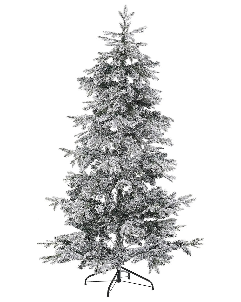 Artificial Christmas Tree White Synthetic 210 cm Snow Frosted Flocked Hinged Branches Holiday Beliani
