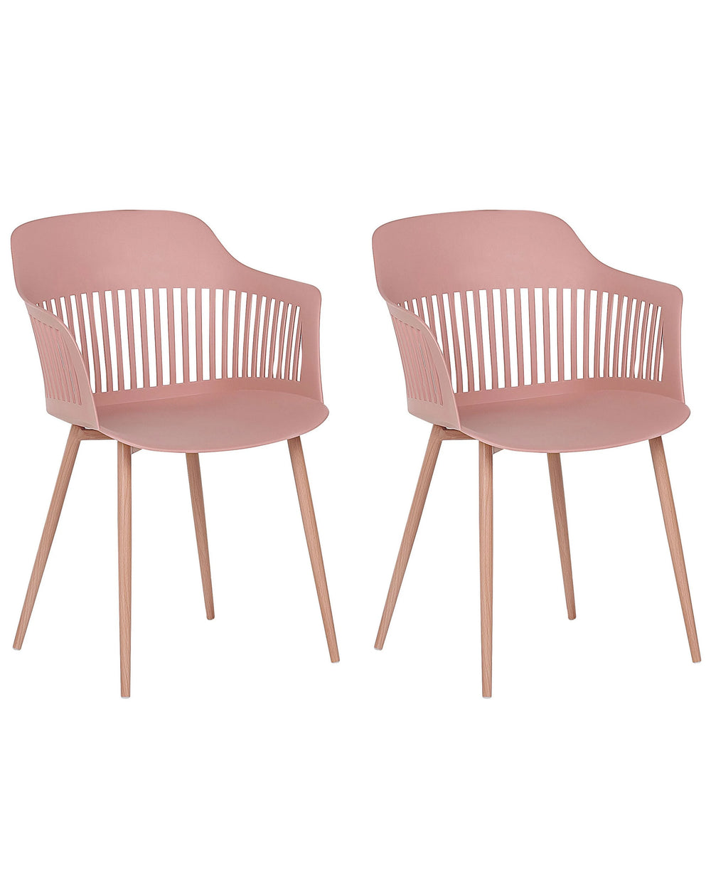 Set of 2 Dining Chairs Pink Synthetic Material Metal Legs Open Work Backrest Modern Living Room Beliani is backordered and will ship as soon as it is back in stock.