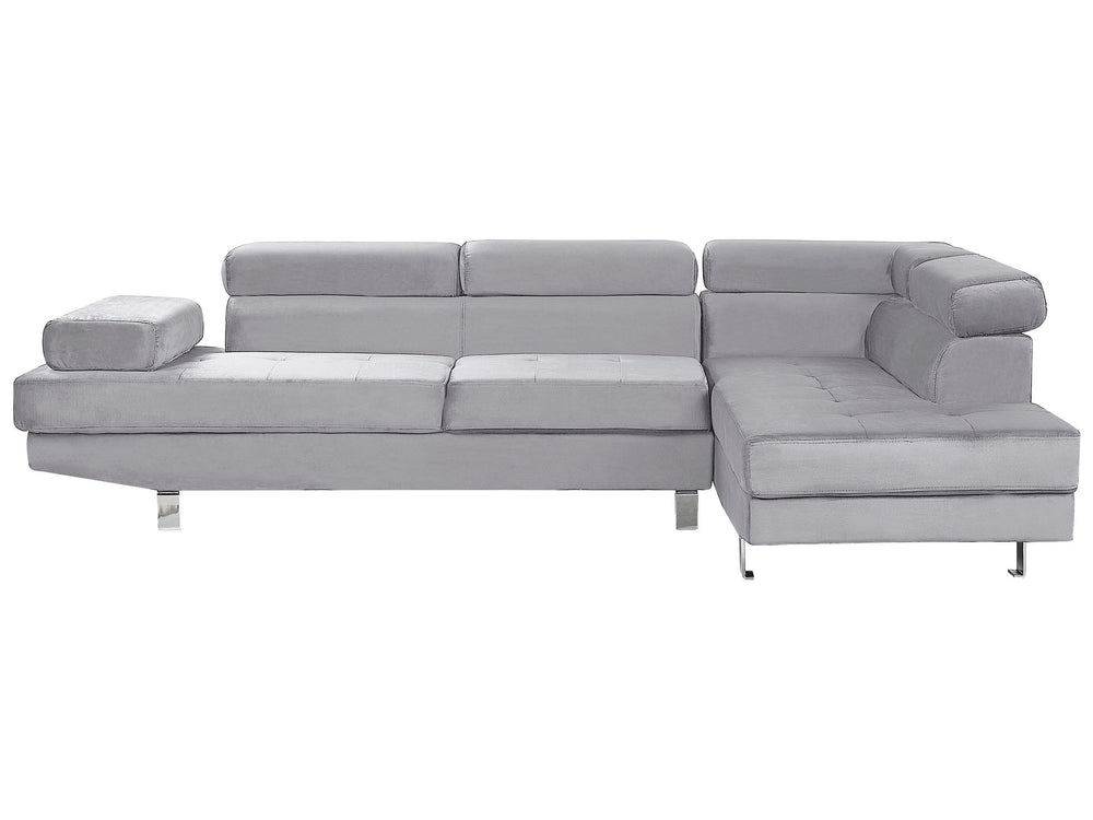 Corner Sofa Grey Velvet L-shaped 5 Seater Adjustable Headrests and Armrests Modern Living Room Couch Beliani